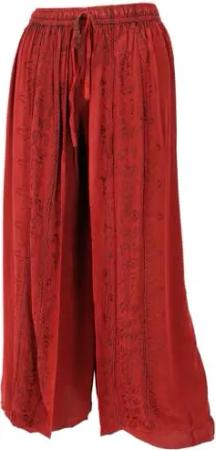 GURU SHOP Palazzohose, Langer Boho Hosenrock, Orienthose, Bestickte Sommerhose - Rot, Damen, Synthetisch