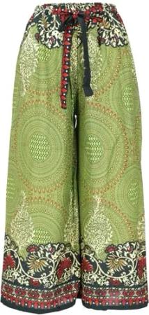 GURU SHOP Palazzohose, 7/8 Hosenrock, Boho Schlaghose, Sommerhose - Grün, Damen, Size:S/M