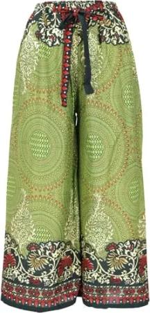 GURU SHOP Palazzohose, 3/4 Hosenrock, Bedruckte Natürliche Boho Schlaghose, Sommerhose - Salbei, Damen, Baumwolle, Size:S