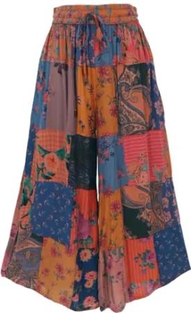 GURU SHOP Patchwork Hose, Weite Boho Sommerhose - Blau, Damen, Size:L