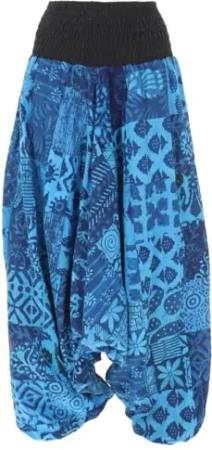 GURU SHOP Afghani Hose, Overall, Jumpsuit, Haremshose, Pluderhose, Pumphose, Aladinhose - Schwarz/taubenblau, Damen