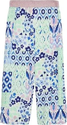 Gemusterte Wide Leg Hose aus satinierter Viskose mit Glitzerbund weiß 128