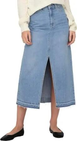 Damen Midi Jeans Rock JDYBella Long Damenrock mit Schlitz 15317441 Light Blue Denim XS