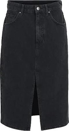 Damen Nmkath Nw Slit Midi Skirt Vi478bl Noos Rock, Black Denim, M EU