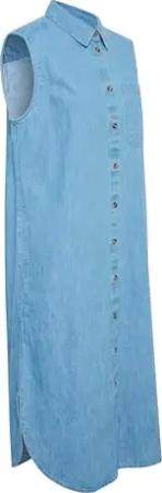Damen Denimkleid Ärmellos Buttons Collared Midi Length A-Linie Fit Kleid, Medium Blue Chambray, 34