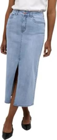 Damen, Maxi-Länge, hohe Taille, gerade, passgenau Skirt, Blue Denim, 32