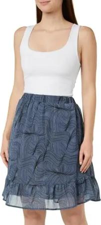 Damen Women's Skirt Printed Chiffon Above Knee Length Pockets Elastic Waist Rock, Infinity Blue/Black Lines, 38