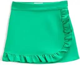 Mädchen Mini Ruffled Envelop Zipper Closure Skirt, Green (814), 7-8 Jahre EU