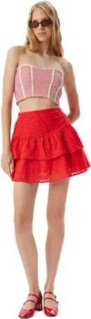Cotton Voluminous Cutwork Floral Mini Skirt