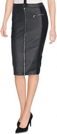Damen Ladies Synthetic Leather Biker Skirt, Schwarz, M EU