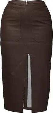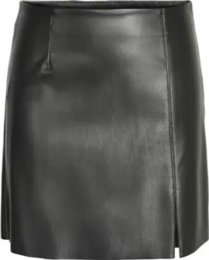 Damen Nmclara Penny Pu Hw Slit Skirt Curvenoos, Schwarz, 44