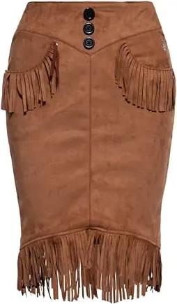Damen Westen Rock · Cowgirl · Vintage · Retro · Fransen · Etui · Belistiftrock · Pencilrock · Wildlederoptik · Lederimitat · Veloursoptik · Sommer · 50s