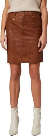 0132 - Damen Leder-Rock Knielang 5-Pocket – echtes Lamm Leder (Premium Glattleder) – schwarz (Cognac, S)