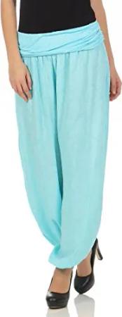 Malito - Damen Haremshose - Pumphose aus Baumwolle - leichte Sommer Stoffhose - Pluderhose zum Tanzen & Chillen - dünne Aladinhose 1482 (Blau)