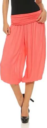Malito – Damen Haremshose – Pumphose aus Baumwolle – Kurze Stoffhose für den Sommer – Capri Pluderhose zum Tanzen, Chillen & Yoga – knielange Hose 1483 (Coral)