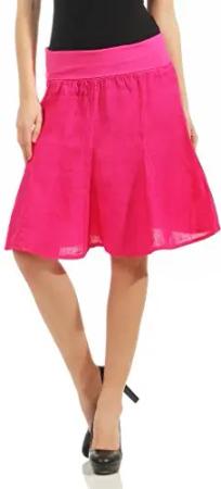 Malito Damen Leinenrock mit Stretchbund | Schlichter Glockenrock | Sommerrock in Uni Farben | Minirock - Rock 1580 (Fuchsia)