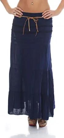 Malito – Rock Damen bodenlang aus Baumwolle mit elegantem Strickmuster & Kunstleder Gürtel – Maxi Rock lang mit breitem Bund – Luftiger Sommerrock 1116 (Dunkelblau 34-40)