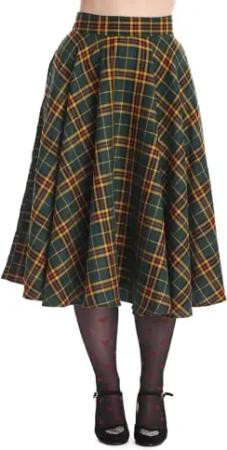 Tellerrock Highland Green Swing Skirt Karo Kariert Tartan Grün, Größe:S