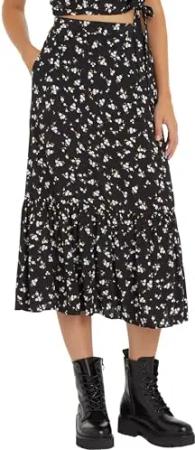 Damen Rock Floral Ruffle Midi-Länge, Schwarz (Spring Floral), 5XL