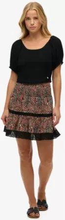 Superdry Damen Minirock mit Spitzenborte und Print Black - Größe: 44