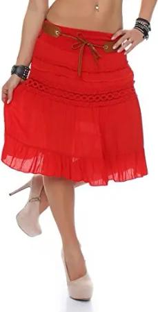 Malito - Damen Rock mit Gürtel - Glockenrock mit Stickereien - kurzer Sommerrock mit Jerseybund - unifarbener Minirock 8220 (Rot)