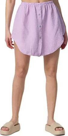 Damen A-Linien-Rock Sommerlicher Musselin Minirock mit Perlmuttknöpfen Hemdverlängerung in Einheitsgröße PM13 (Lila)