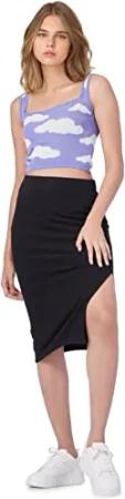 Damen Onlnova Life Elite Piper Slit Skirt Rock, Black/AOP:587 Yoko, S