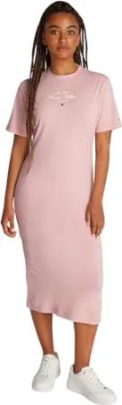 Damen T-Shirt Kleid Script Midi Länge, Rosa (Foggy Pink), L