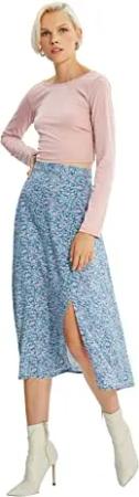 Damen Trendyol Damen Gerade Midi Eine Linie Rock Skirt Western, Indigo, L