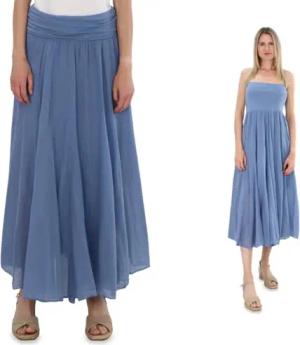 Malito - Damen Maxirock - locker geschnittenes Bandeaukleid aus Baumwolle - Rock mit elastischem Jerseybund 80150 - Jeansblau