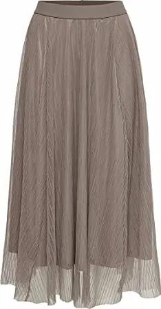 RO020 Langer eleganter Damen Maxi Sommer Rock Faltenrock, Farbe:beige, Mode Größe:L/XL