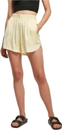 Damen Kurze Hose Ladies Viscose Satin Resort Shorts, Farbe softyellow, Größe S