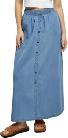 Damen Rock Ladies Long Wide Light Denim Skirt SkyBlue Washed 4XL