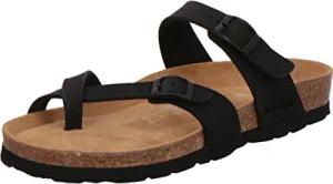 Damen, Frauen, Klassische Sandalen, Sandalen,Pantoletten,Sommerschuhe,Hausschuhe,Kork-fußbett,SCHWARZ,37 EU / 4 UK