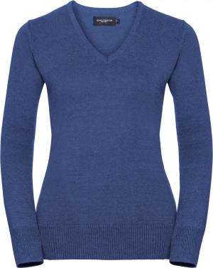 Collection Damen Strickpullover – V-Ausschnitt, denim marl, XL