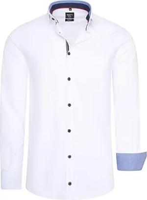 Freizeit-Hemd Herren Langarm Stretch Hemd im Kontrast Desgin Slim Fit S - 3XL 022, Farbe:Weiß, Größe S-3XL:S