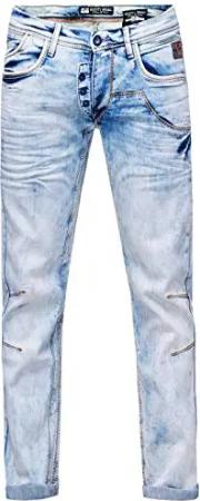 Hell Blau Herren Jeans Hose 'Ruben' im Summer-Used-Look und Ausgefallenem Design 'Ice Blue' Stretch Regular -31, Farbe:Hell Blau, Größe Jeans:40W / 34L