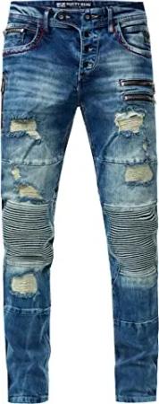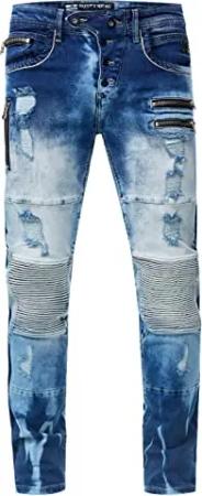 Herren Biker-Jeans 'MISATO' DIE-ABSOLUTE-JEANS Slim Fit Stretch Destroyed Biker Zip-Design mit Stylischer Knopfleiste und Kontrast-Naht 241, Farbe:Ozean Blue Used, Größe Jeans L32:30W / 32L