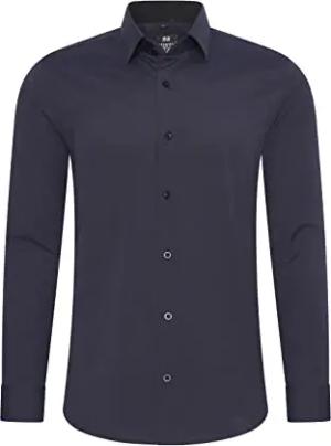 Herren-Hemd Premium Slim Fit Langarm Stretch Kontrast Hemd Business-Hemden Freizeithemd, Größe S-6XL:6XL, Farbe:Navy