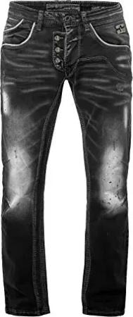 Herren Jeanshose Designer Ruben Front Knopfleiste Stretch Denim Black Used White Washed 40, Farbe:Anthrazit, Größe Jeans L32 + L34:30/34