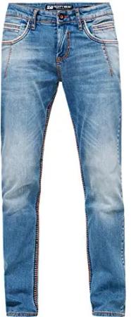 Jeanshose Herren Jeans 'ODAR' Regular Fit Stretch 'Kontrastnaht' Jeans-Hose Stone-Washed Destroyed Freizeit-Hose 234, Farbe:Blue Used, Größe Jeans L32:38W / 32L