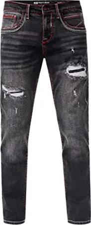 Destroyed Herren Jeans Hose 'MINO' Slim Fit Stretched Jeans mit Detailreicher Ziernaht Streetwear Freizeit Hose Kontrast-Naht Destroyed-Pants 242, Farbe:Black Used, Größe Jeans L32:33W / 32L