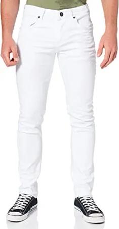 Jeanshose Herren Jeans Slim Fit Stretch Streetwear Basics Jeans-Hose Stone-Washed Business-Freizeit 224, Farbe:White - 7, Größe Jeans L32 + L34:32/32