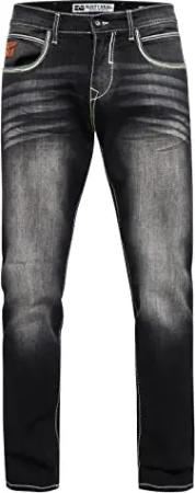 Kontrastnaht Herren Jeanshose 'TOYAMA' Regular Fit Streetwear Herren-Jeans-Hose L32 Dicke-Naht-Hose Flex 236, Farbe:Black Used, Größe Jeans L32:33W / 32L