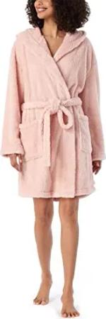 Damen Bademantel kuschelig und warm mit Kapuze - Teddy Fleece