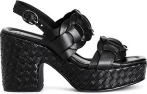 Keilsandalen Aus Leder Mit Doppeltem Riemen Und Flechtmuster, Für Frauen, Farbe Schwarz, Größe 40