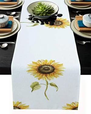 Elegante Tischflagge aus Baumwollleinen, 33 x 178 cm, Aquarell, Sonnenblume, Bauernhaus, formelles Muster für Familienessen, Weihnachten, Urlaub, Geburtstag, Party, Tisch, Heimdekoration