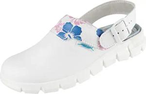 Clog 7320 - Dynamic Glattleder, weiß mit Aufdruck Blumenmuster, zertifiziert, 41