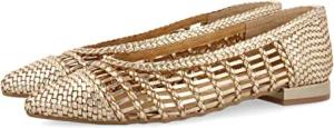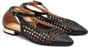 Schwarze Ballerinas aus geflochtenem Leder mit Bindung für die heilige Frau, Gold, 38 EU