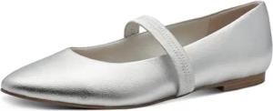 Damen Ballerinas mit Riemen Spitz, Silber (Silver), 37 EU